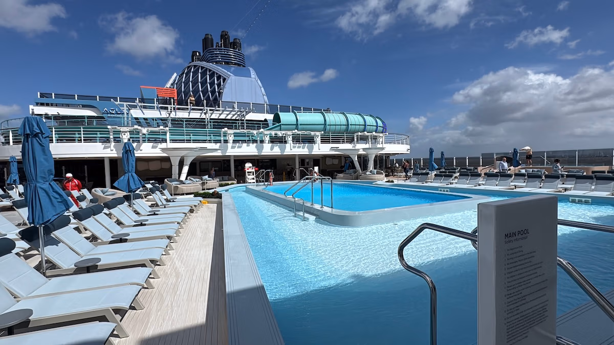 Este barco tiene la primera montaña rusa Aqua en el mar (aunque la gente de Disney podría argumentar ese punto), es un 10 por ciento más grande que Prima y Vivaand so forth. Pero tenía muchas preguntas, que exploraremos en los próximos días.