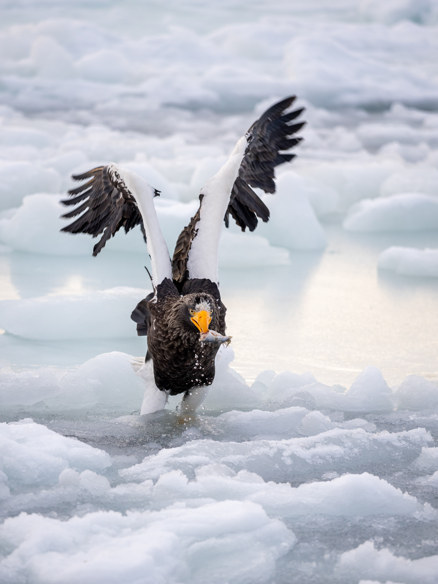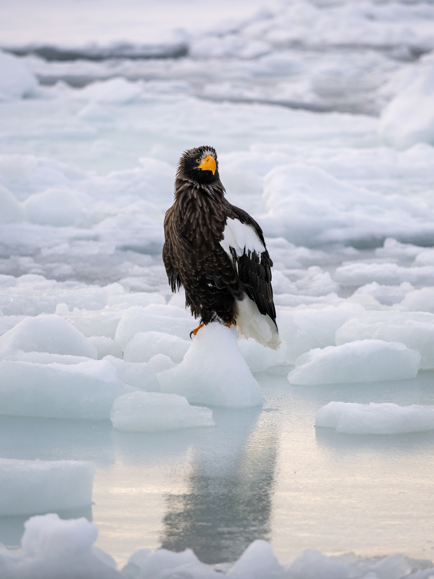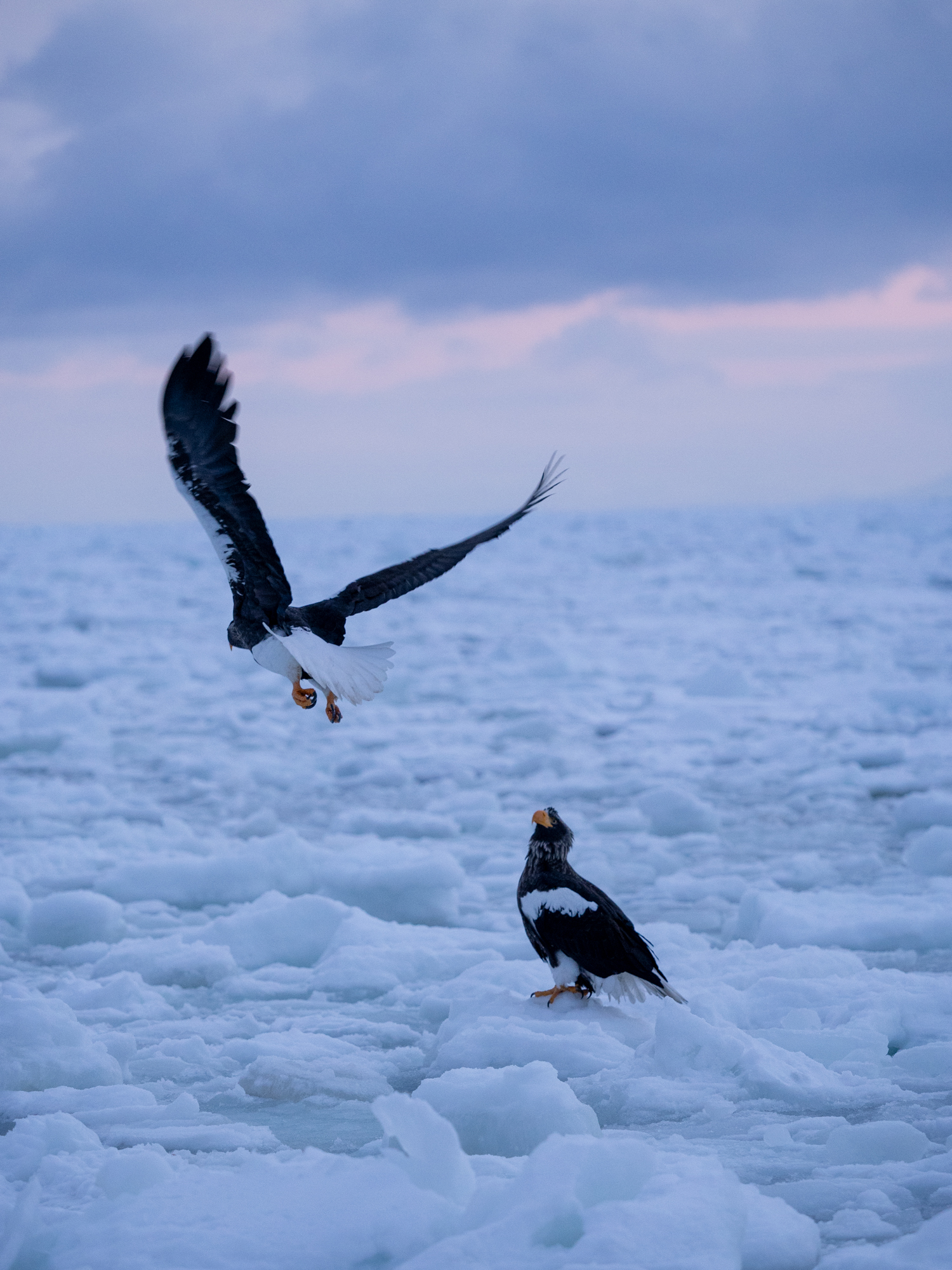 Estos amigos emplumados, endémicos de la península de Kamchatka, el mar de Okhotsk y otras partes de Siberia en Rusia, son la razón por la que he tenido el este de Hokkaido en mi lista de deseos durante muchos años. A la par del hielo a la deriva, un proceso ambiental fascinante que he seguido y quería fotografiar desde que vi un cartel al respecto en Sapporo, allá por el año 2000.