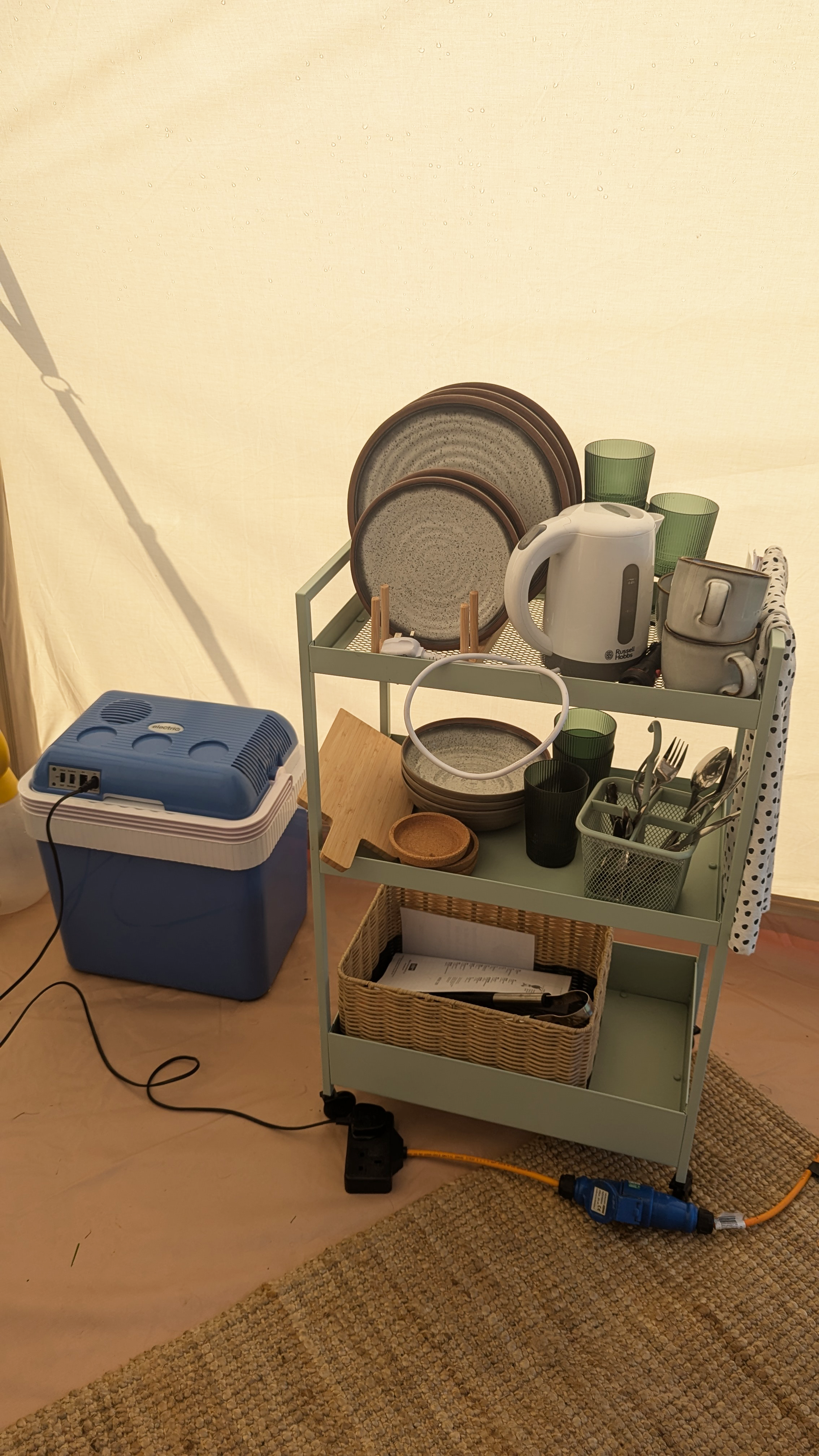 Siempre es agradable no tener que hacer el esfuerzo de empacar y montar una tienda de campaña, así que aproveché la oportunidad de quedarme en una tienda de campaña con cúpula de lona ya montada, completa con una cama adecuada, muebles y una nevera portátil en el corazón de The New Bosque.