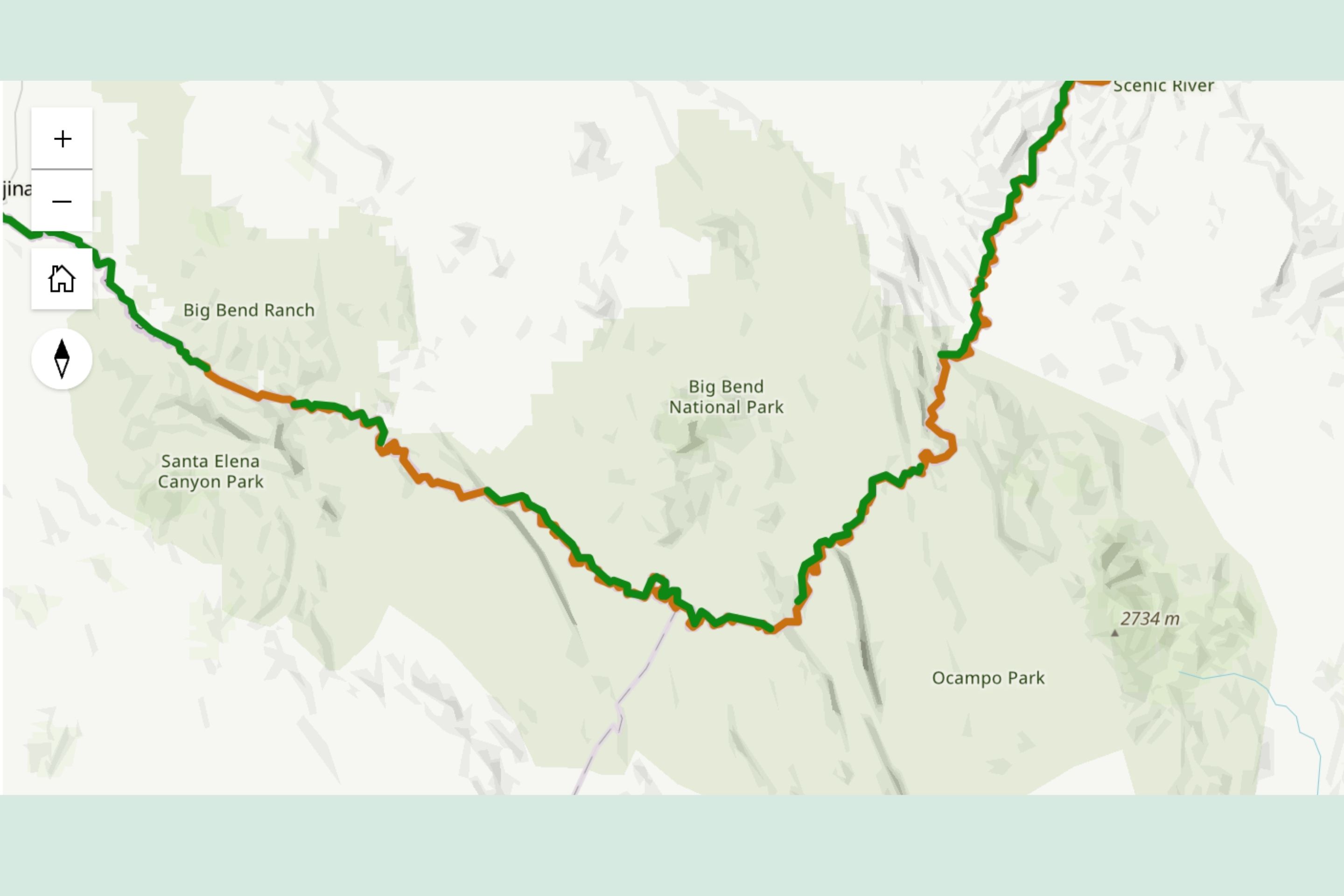 El Parque Nacional Massive Bend alberga una frontera de 118 millas con México a lo largo del río Grande y, como resultado, Aduanas y Protección Fronteriza (CBP) planea construir una sección larga de muro fronterizo de alta tecnología en el parque y a través de otras tierras públicas del estado.